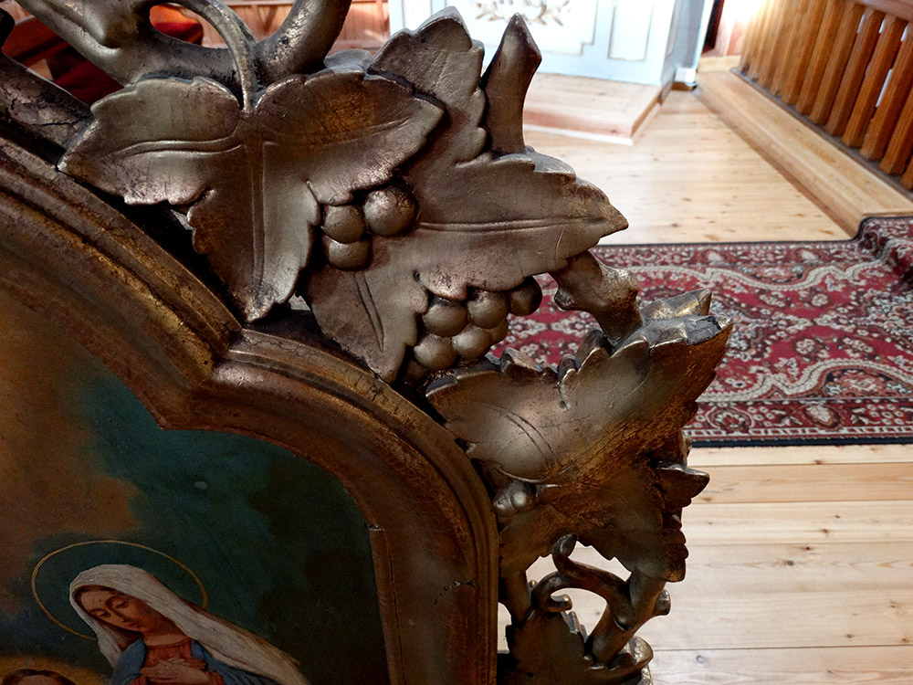 - oczyszczenie ramy i malowideł oraz usunięcie wtórnych przemalowań,
