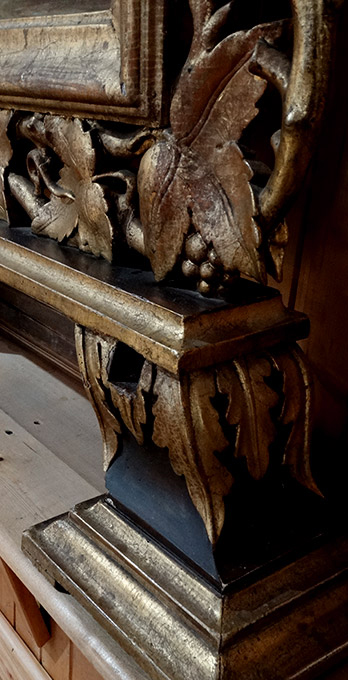 - uzupełnienie ubytków w drewnie i warstwie malarskiej oraz rekonstrukcję brakujących elementów rzeźbiarskich,